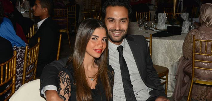 بالصور.. كريم فهمي وزوجته في حفل زفاف النقلي